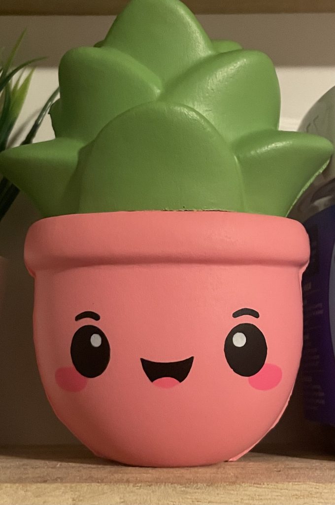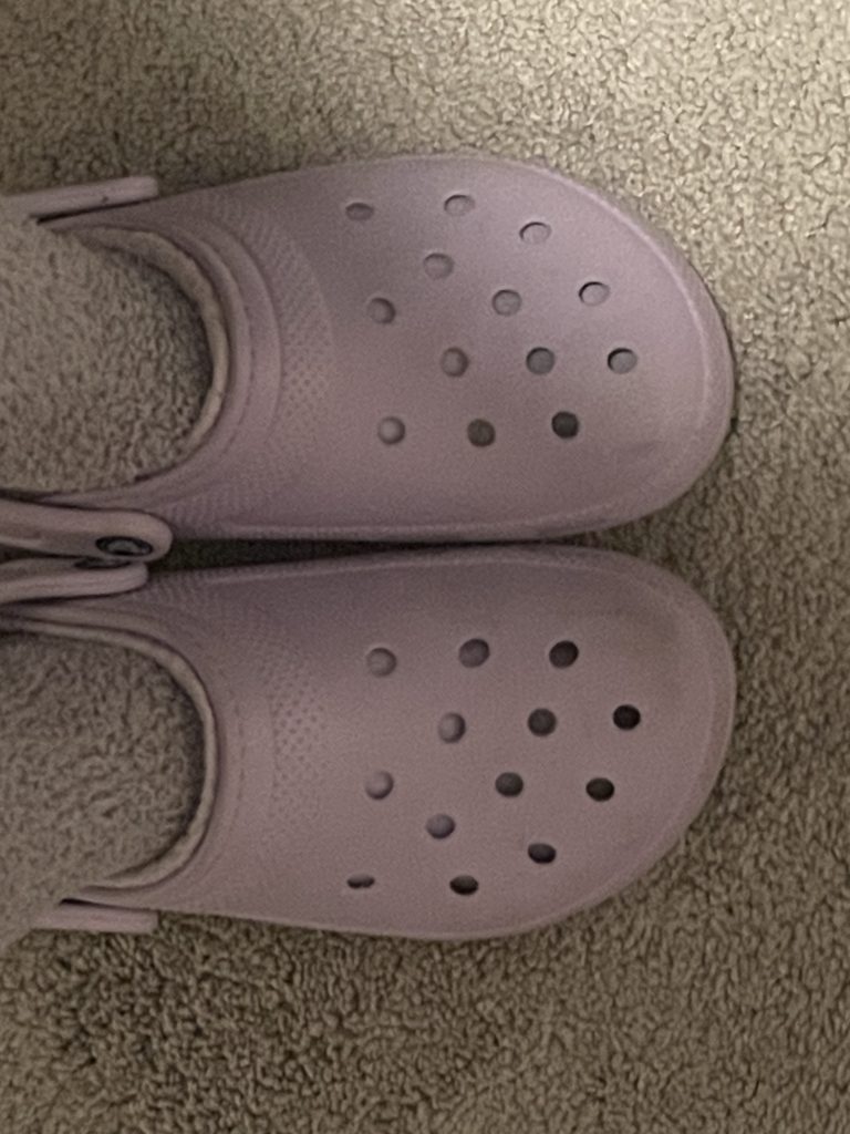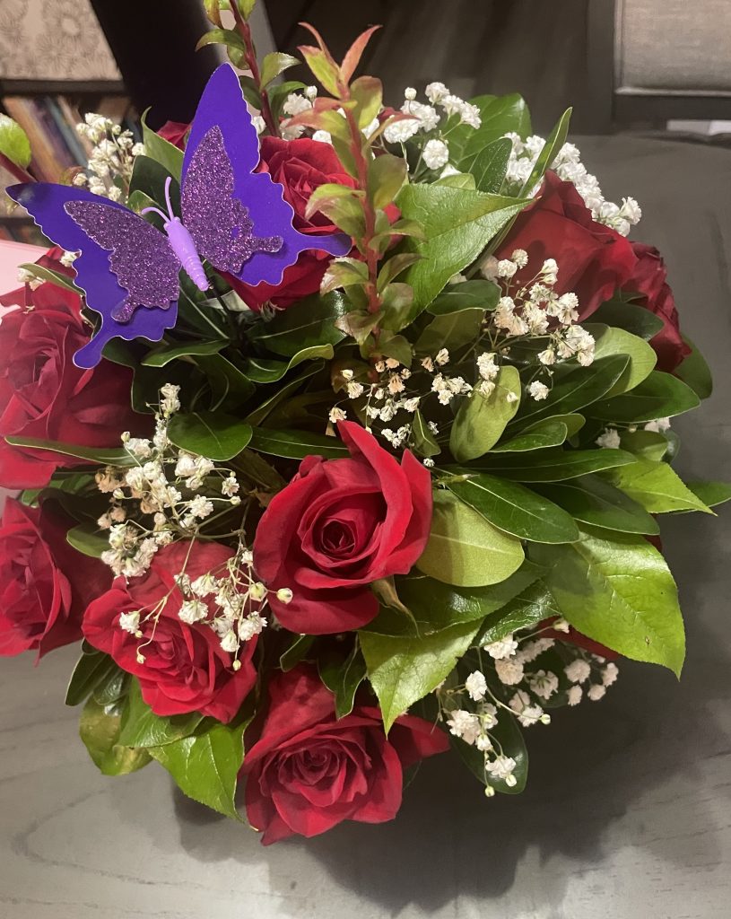 On May 16th at 10:00 pm, I went on a photographic scavenger hunt in my room. Although I keep my room organized, I have a lot of clutter. As a crochet enthusiast, I have at least 20 balls of yarn in a basket next to my dresser. I also have an expansive collection of stuffed animals, stress balls, souvenirs from places I’ve visited, and decorations that add character to my room. While completing the 15-minute scavenger hunt, I took photos of items that brought me joy, photos that held sentimental value, and a single of my wall lighting. Overall, the pictures that required minimal effort were my plaid blanket and my favorite stress ball, which has a smiley face. Also, the most inventive moment I captured was the photo of my roses in a vase that cast a fascinating shadow on my desk.